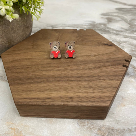 Wooden Stud Earrings - Coffee Cup Heart Bean