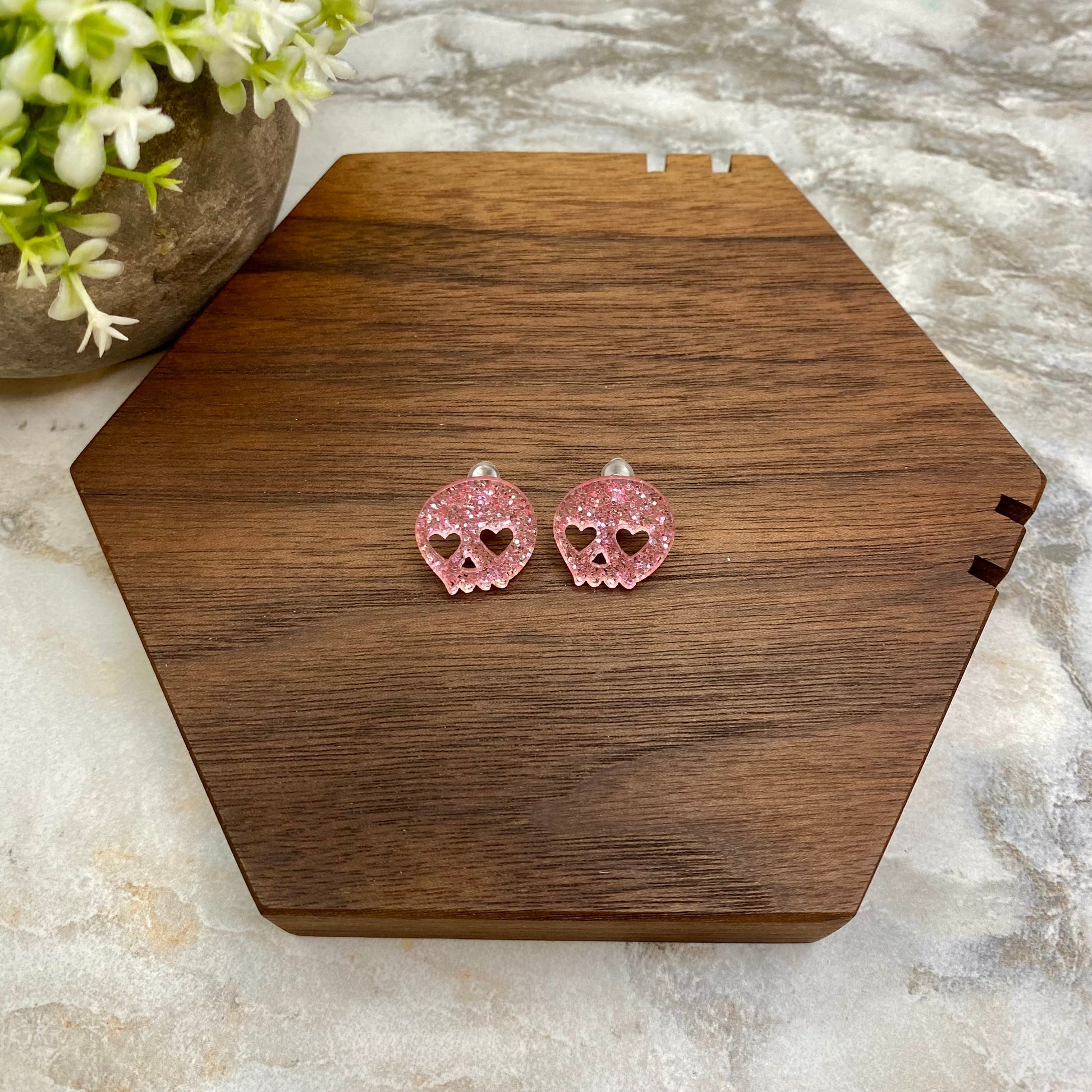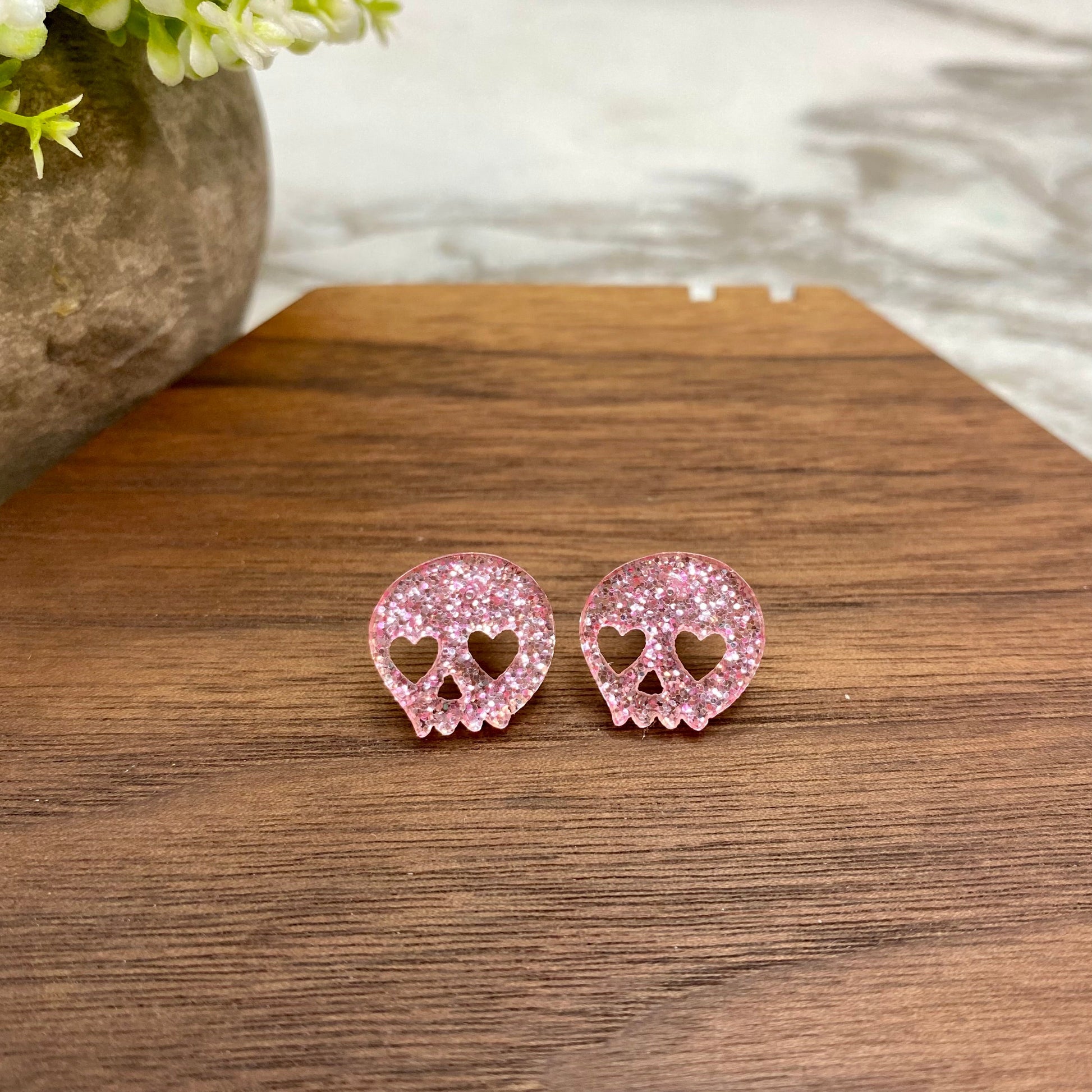 Acrylic Stud Earrings - Halloween - Pink Skull