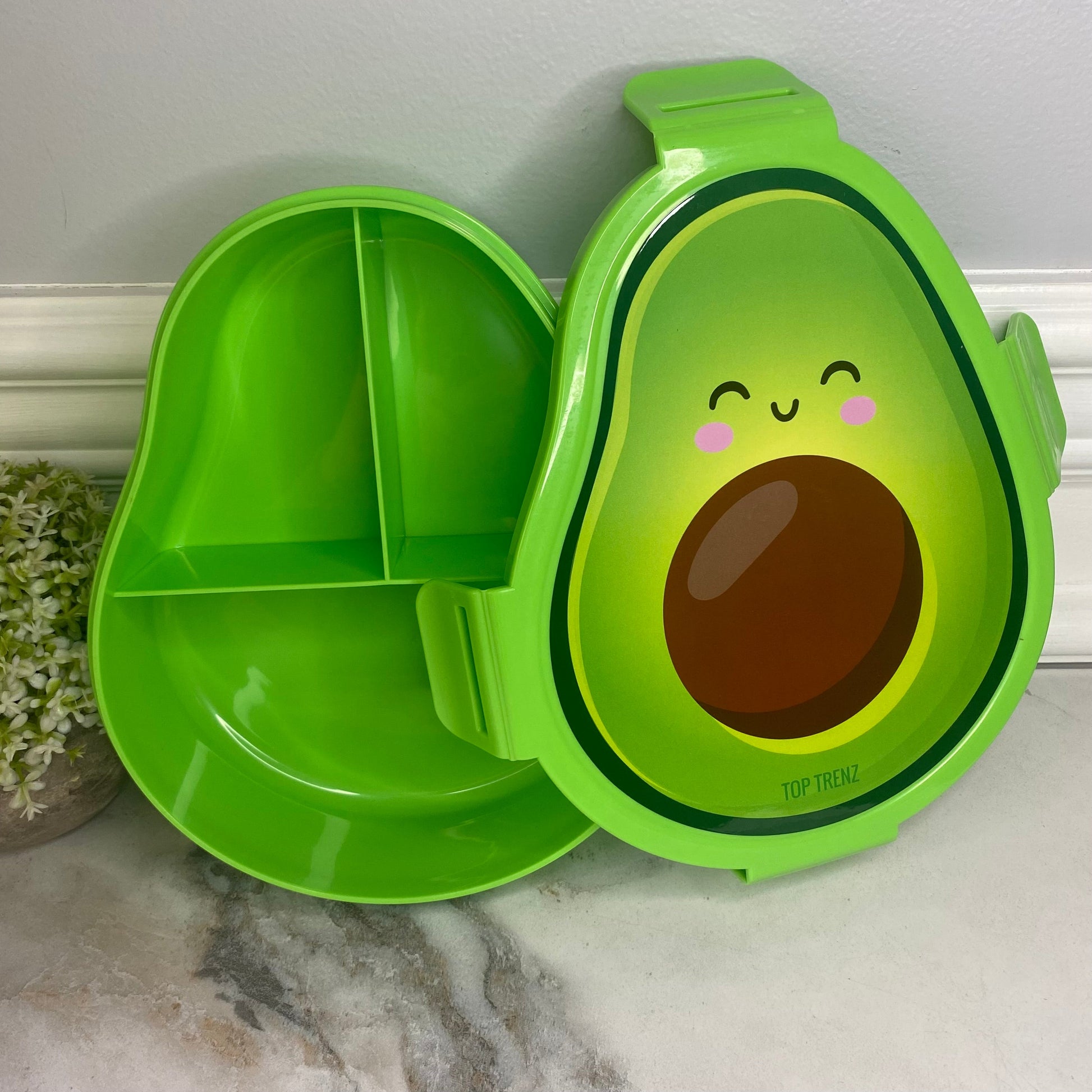Introucing It's Bento Time Avocado Lunch Box! The fun avocado shaped bento style lunch box you can use to carry your lunch! Exclusively by Top Trenz! Measures 6.6”Wx 8.5”H x 2.5"D