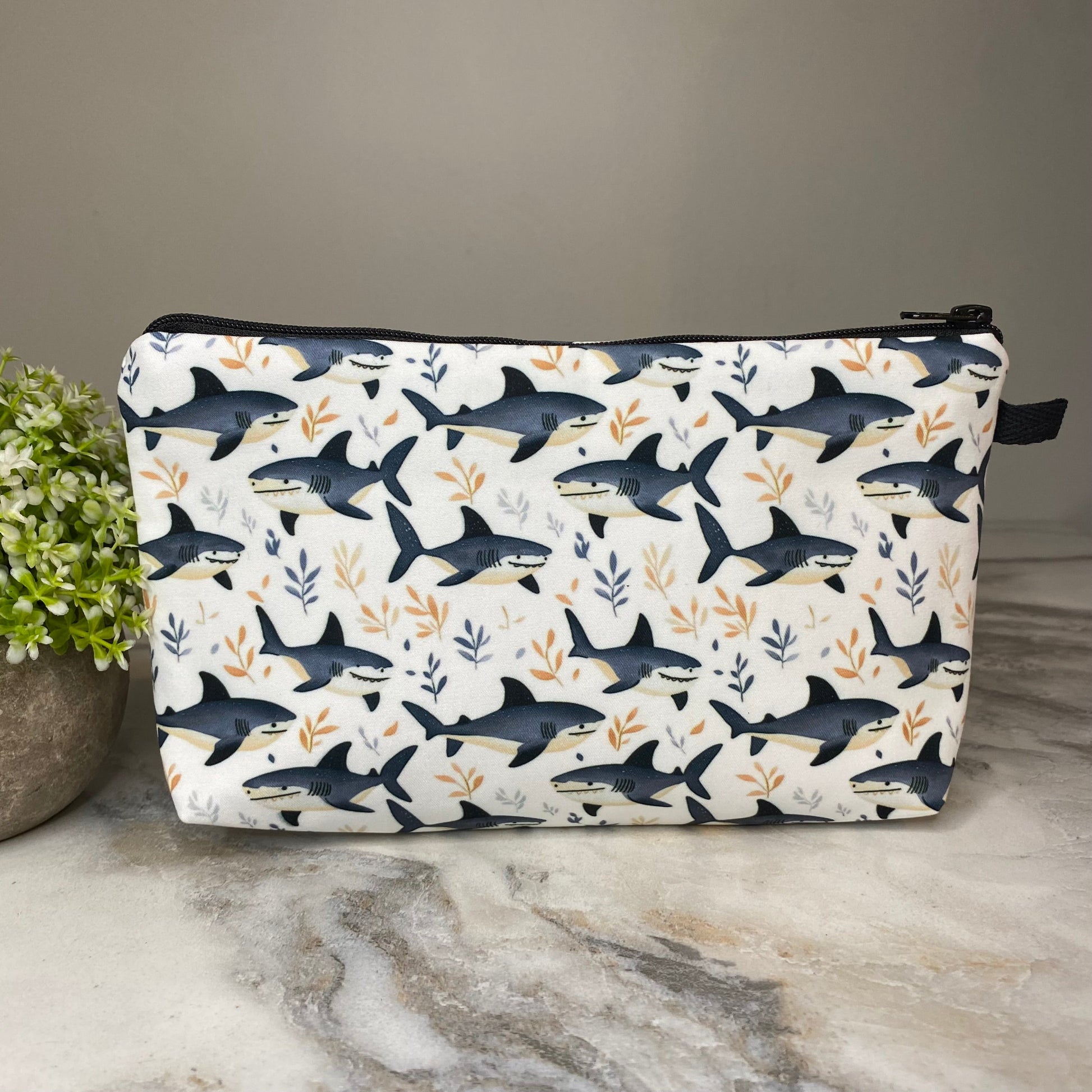 Pouch - Blue Shark on White