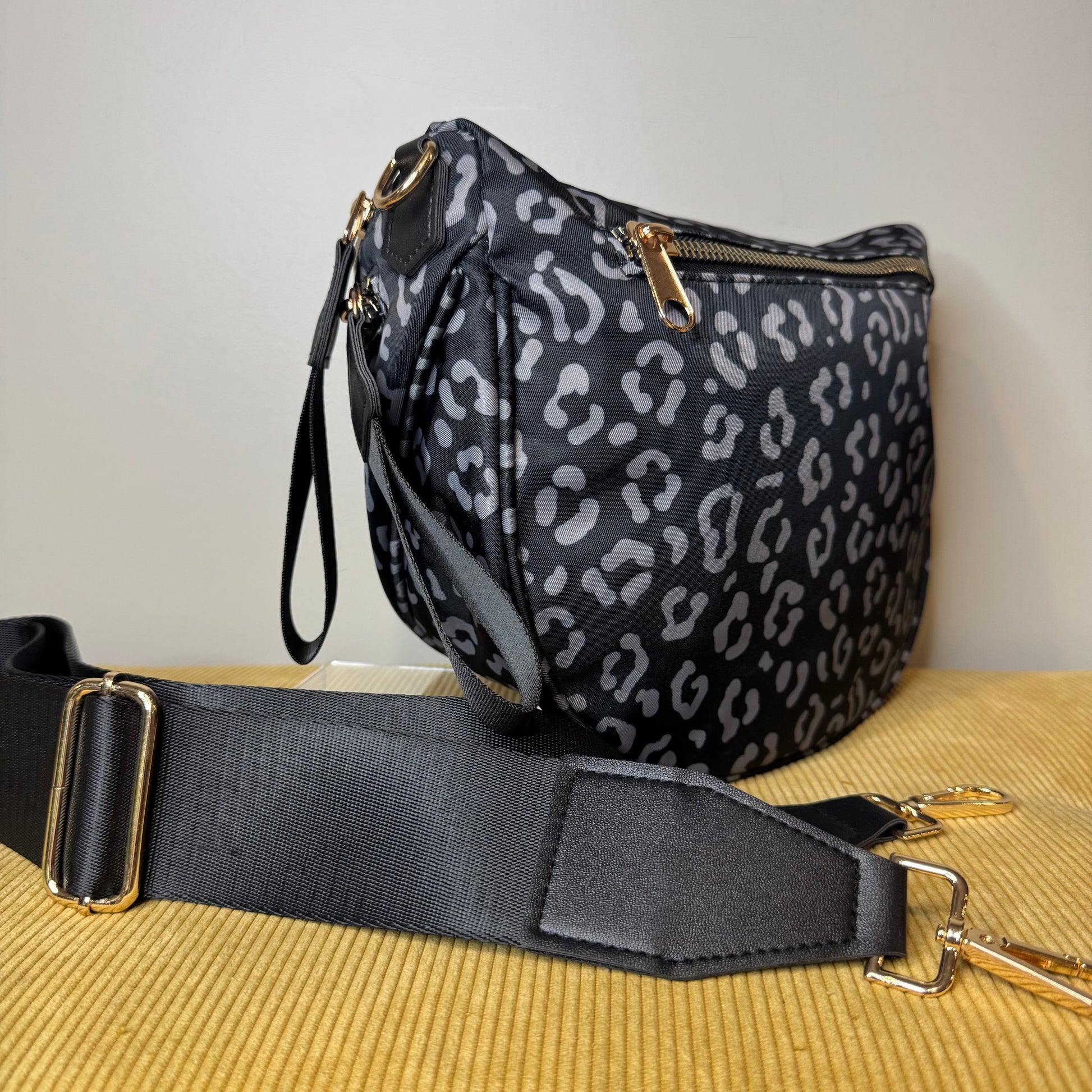 Roni - Nylon Crossbody - Black & Grey Animal - PREORDER