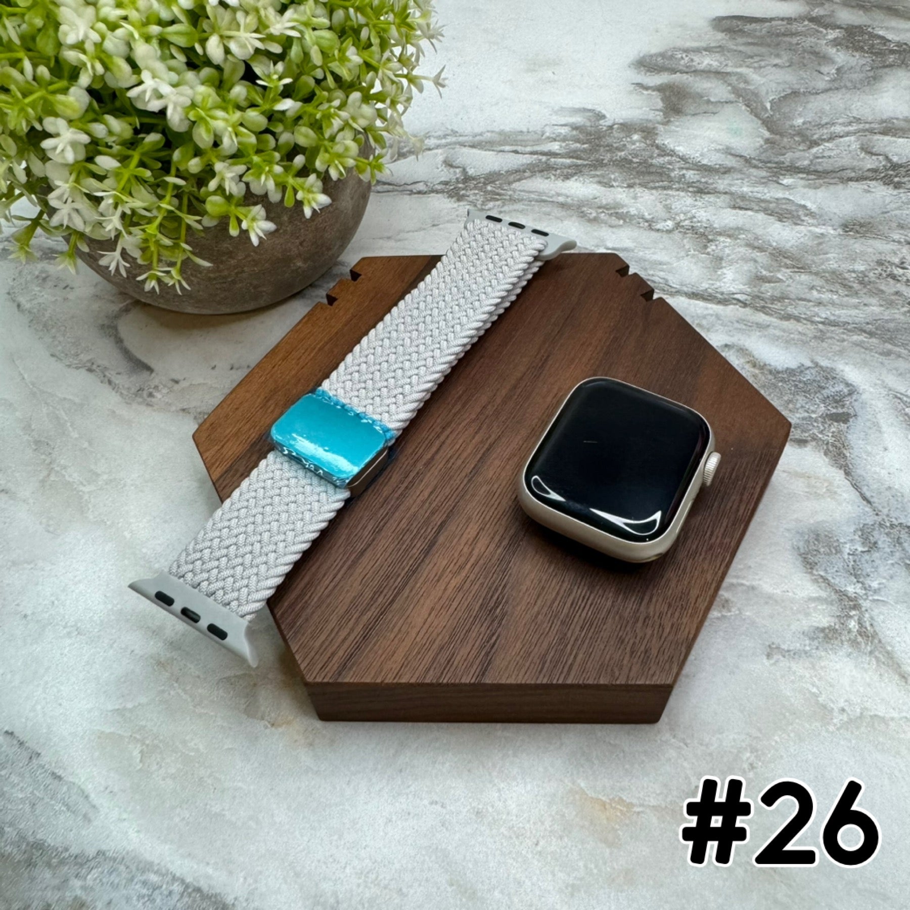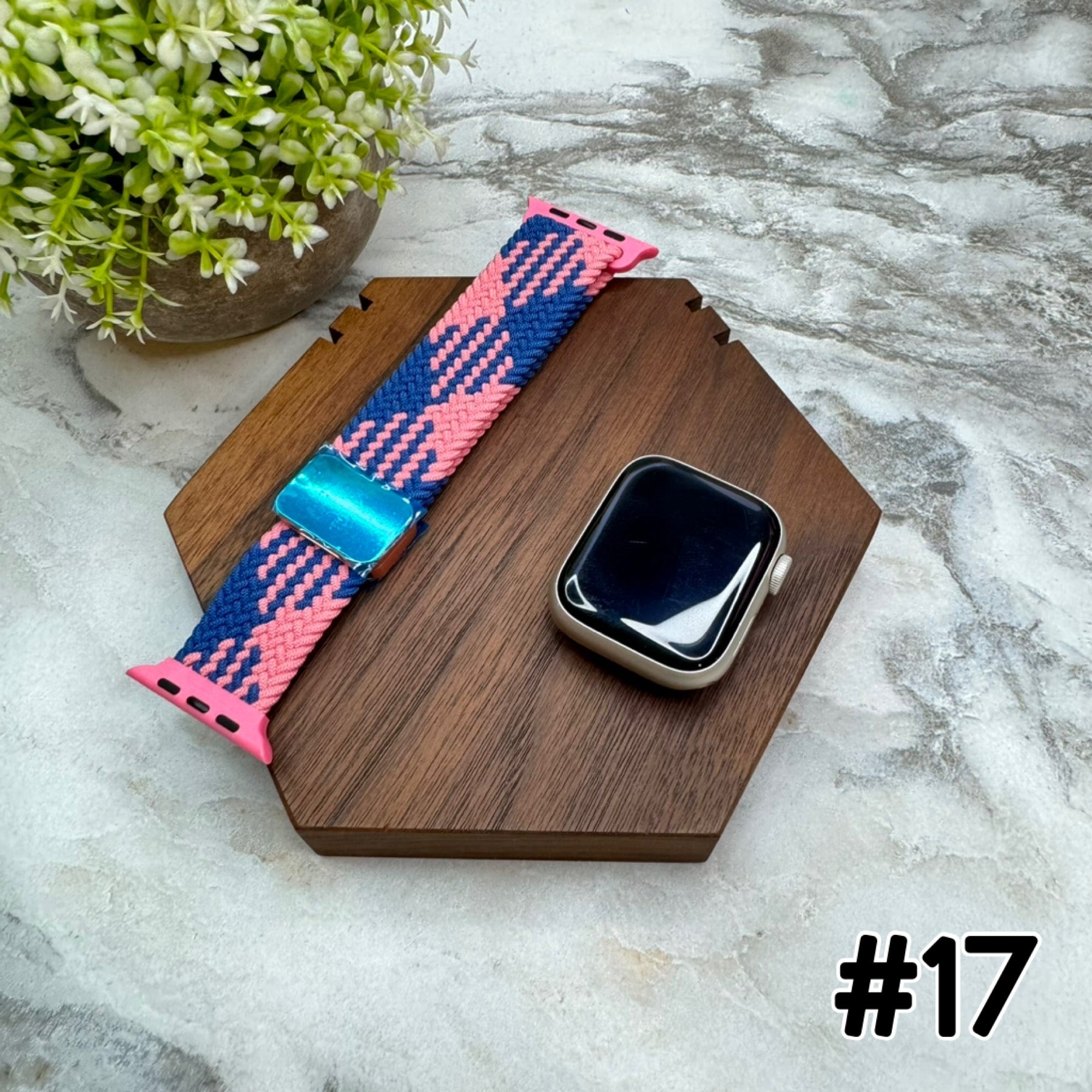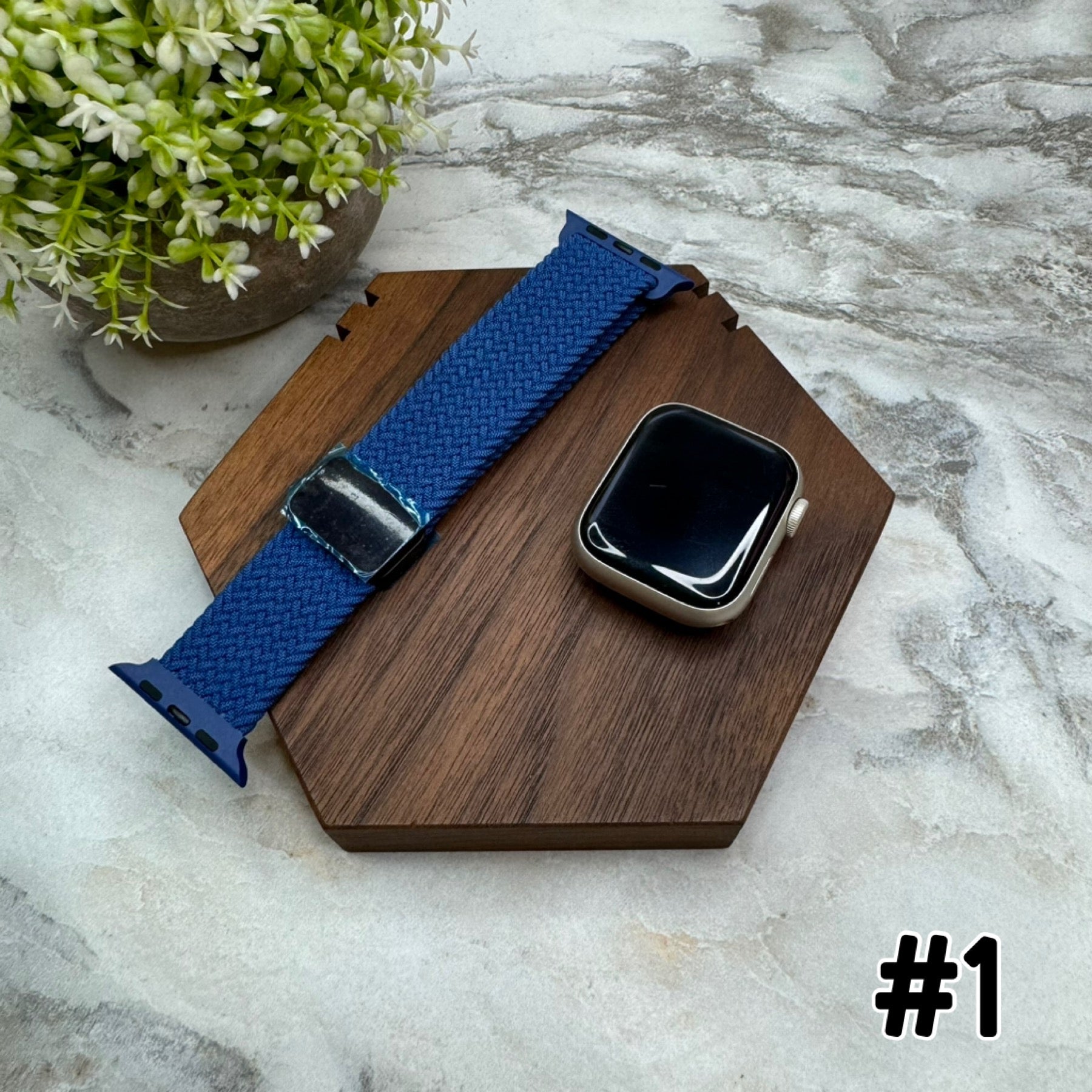 Watch bands for apple watches. Comes in sizes 38/40/41mm. Please note: the blue on the hardware is just a scratch resistant sticker.